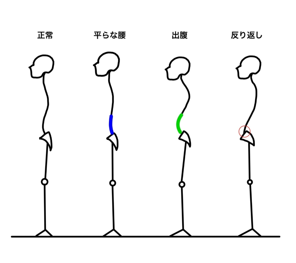 生理的弯曲がない「平らな腰」に分類。※下図のイラスト参考